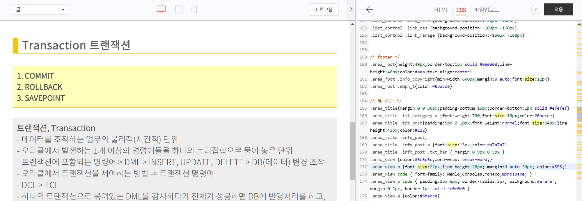 저 상자속 크기를 바꾸려면 172라인의 font-size 변경
