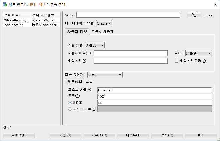 호스트 이름 포트는 오라클이 개인 컴퓨터에 깔려있는 상태가 아니어도 접속해서 조작할 수 있는 것이다.