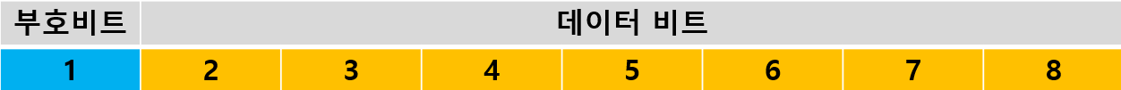 양수값에 -1을 해주는이유는 자바에서는 byte라는 자료형은 8비트(8개의 칸이라고 치자)에서 1번째칸을 다른 용도로 쓰게 된다. 나머지 7개칸을 데이터 비트, 처음 한칸을 '부호 비트' 라고 부르는데 부호가 +/- 이냐를 지정하는 공간이다.