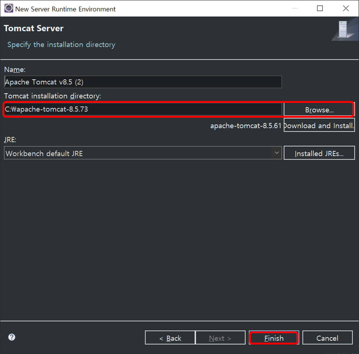 이클립스는 서버가 아닌 개발툴이기때문에 톰캣을 등록해야한다.