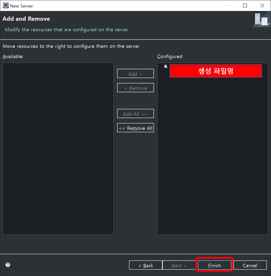 안에 등록된 apache tomcat은 이전에 미리 등록했기때문에 보이는 것이다.